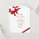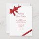 Convide convidados para uma festa pré-natal com o elegante Convite de festas da Casa Aberta de Férias Vermelhas. Personalize-o com as suas próprias informações específicas sobre a parte do xmas. Este convite de festas personalizado clássico apresenta fita vermelha amarrada em arcos enfeitando os cantos e parece um presente de Natal festivo embrulhado.
