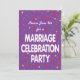 Convite de festas de celebração de casamentos com um arco-íris brilhante de estrelas a cores e confetti e seu texto personalizado do outro lado. Se você fugiu ou teve um casamento de destino ou uma cerimônia de tribunal e está lançando uma festa de casamento de casamento poste mais tarde, personalize este convite para o seu evento.