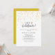 Este convite de festas de celebração de vamos de ouro é perfeito para um noivado simples, elegante, solteira, aposentadoria ou qualquer evento ou festa. O elegante design apresenta um confete de brilho dourado falso e uma caligrafia minimalista com um toque moderno.