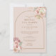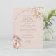 Linda pinça floral, gramíneas aquáticas e moldura de arco quic, sua festa especial de chá de noiva, detalhes sobre um fundo cor-de-rosa pincelado com moderna tipografia elegante de ouro e suas iniciais de monograma no reverso. Projetado por Thisnotme©