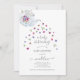 convite de festas de chá chá de fraldas com um bule de chá saindo flores que rodeiam lindas caligrafias. O ditado é "UM BEBÊ ESTÁ SE REPRODUZINDO." Que design doce para a sua festa de chá! Veja a coordenação de itens no nosso compro, Encantado Finch.