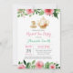 Convite de festas de chá chá de panela. Convite para Chá de Chá Floral, Cor-de-Água, Rosa-Rosa, Rosa chique. Vintage. Retro. Para mais personalização, clique no botão "Personalizar" e use nossa ferramenta de design para modificar este modelo.