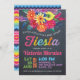 Convite de festas de CHÁ DE FRALDAS Fiesta. Festa Mexicana. Flores mexicanas aquarelas. Placa para impressão digital de lado duplo