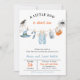 Celebre sua chegada com este charmoso convite de Chá de fraldas do Halloween. Com roupas de bebê, abóboras e detalhes festivos assustadores, é simultaneamente fofo e sazonal. Todo o texto é totalmente personalizável - incluindo nomes de pais, data, hora, endereço e RSVP - para que você possa personalizá-lo perfeitamente para o seu evento. Uma forma única de convidar a família e os amigos a partilharem este momento especial consigo.