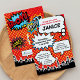 chamando a super-mãe! comemore sua festa de chá de fraldas de casais super-heróis com este convite de chá de fraldas super-herói. Este convite de festas de super-herói apresenta a cidade de gotham e a metrópole sky scrapper em um fundo de histórias em quadrinhos de super-heróis. Perfeito para a sua festa de chá de fraldas superman, festa de chá de fraldas de batman e super-heróis gerais, festa de chá de fraldas temida de super heróis.