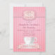 Este convite de festas chama a atenção para uma festa de chá só para as meninas. Quer seja uma festa de aniversário de criança ou uma festa de chá de chá de panela, este doce convite ajustado qualquer garota que se junte. Uma fita e uma fivela no topo do convite introduzem o tema do partido. A parte personalizada detalha a impressão em relação ao fundo rosa listrado com a impressão RSVP na faixa abaixo. Disponível com produtos correspondentes.