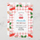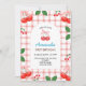Torne o teu aniversário mais doce com este adorável convite para a cereja! Enterrado com cerejas vermelhas brilhantes, bolinhas brincalhadas e charme alegre, este convite é perfeito para uma celebração divertida e frutuosa. Projetado apenas para crianças, este cartão personalizável permite adicionar facilmente o nome, a idade e os detalhes da festa do seu filho. Quer seja uma festa de piquenique ou um balde de quintal, este doce design de cereja é a maneira perfeita de convidar amigos e família para a diversão.
