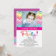Este adorável, colorido, convite da foto do estilo da viga do arco-íris é perfeito para a festa de aniversário do tema do arco-íris da sua criança ou para todo o partido ou evento brilhante e colorido.