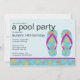 Comece a festa de piscina com o Convite de festas de PISCINA de chinelos florais de turquesa. Convite perfeito para uma festa de natação adolescente. Apenas personalize com suas informações e você está pronto para ir! Itens correspondentes, incluindo selos de postagem de aniversário, adesivos de favoritos, cartões de agradecimento e obrigado que você também está disponível em nosso compro. www.celebrateitinvites.com ©Babystar Designs