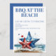 Elegante convite de festas vermelho branco e azul de praia.