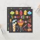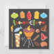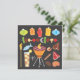 Aqui está uma vibração legal para uma festa de churrasco! CHURRASCO super divertido com lanternas, shiskabob, bebidas, tocha de tiki e comidas de grill em um fundo preto. Ilustração desenhada à mão por McBooboo.