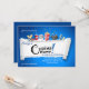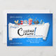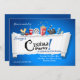 Este convite tem um fundo azul brilhante com uma seção de arrancada que revela as palavras "Cinema Party!". A borda mais alta apresenta passagens de filmes, óculos 3D, uma xícara de refrigerante, um filme, pipoca e um quadro. Perfeito para uma noite de cinema e uma festa de cinema por todas as idades.