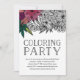 Hospedando uma noite de coloração adulta? Convide amigos a compartilhar seu lado criativo com esses belos convites de festas coloridos, com uma borda de flores tropicais exuberantes em preto e branco, parcialmente coloridos com matizes brilhantes e vibrantes. Uma escolha perfeita para um tema de festa único!
