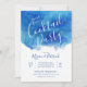 convites de festas de cocktail de noivados com impressão personalizada de barato com fundo de cor aquática azul abstrato e tipografia moderna com escrita com letra manuscrita. Personalize-o com os detalhes do seu partido. Use as ferramentas de design para alterar as fontes e cores do texto ou adicionar texto e fotos adicionais para criar um único design de tipo. Um design de convite na moda e divertido, perfeito para um casamento com a praia!