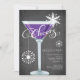 Diversão do CÉREBRO moderno! Retro Holiday Cocktail Convite de festas com um copo de martini vermelho festivo com flocos de neve sobre o caule colocado sobre um fundo de chalkboard preto popular e tradicional. Excelente para uma festa de véspera de ano novo, festas de Natal, festa de natal, festas de escritório, festa da árvore de Trim ou qualquer festa especial de inverno se reúnem.