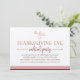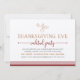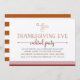 Perfeitamente charmoso em tons de outono de granada e abóbora, nosso convite de festas de cocktail Eve de Ação de Graças convida amigos e família a compartilhar algumas mordidas leves, coquetéis e vinho com você antes do grande banquete de Ação de Graças. Design apresenta uma ilustração de bolota e folha no topo com uma mistura chic de tipografia de blocos e scripts e uma borda inferior listrada em vermelho de granada rica.