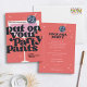 Entre no entalhe e defina o tom para uma celebração inesquecível com o Convite de festas de Coquetel Retro da Bola Disco. Este convite retro-inspirado traz a diversão e o entusiasmo de um hetero animado para seus convidados, prometendo uma noite de dança, risos e alegria. A frente do convite apresenta um fundo vermelho vibrante adornado com um coquetel estilizado, completo com uma bola de disco. O tipo ousado e brincalhão, que declara "Ponha as calças do seu partido", define o clima perfeito para uma noite de festas. É um convite que irradia energia e promete um bom momento para todos. No verso, você encontrará um espaço designado para compartilhar todos os detalhes importantes de seu evento. Quer seja uma festa de aniversário, uma reunião de Ano Novo, ou qualquer outra ocasião que valha a pena celebrar, este convite já cobriu. Além disso, nosso design versátil permite escolher entre placas impressas ou um download digital em formato PDF, fazer fácil de enviar convites por e-mail ou texto. Para os anfitriões e anfitriões que querem infundir o seu partido com uma sensação de glamour retrô e um toque de capricho, o nosso Convite de festas "Ponha nas Calças do Partido" é a escolha perfeita. Prepare-se para dançar à noite e criar memórias duradouras com amigos e entes queridos. Escolha este convite para iniciar o planejamento do seu partido e deixe que os bons tempos se desenrolem!