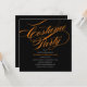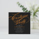 Este convite moderno de halloween inclui as palavras "festas de fantasia" numa escrita elegante em laranja. Os detalhes da parte são exibidos abaixo.