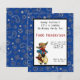 Um convite divertido para qualquer festa de cowboy. Ele apresenta uma borda de bandana azul, preta e branca. Um cowboy giro senta-se no fundo enquanto o topo é para a sua festa.