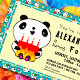Design de festas de 4 anos para crianças. Apresentando um adorável urso panda segurando um bolo de aniversário com quatro velas e colocado em um panda Kawaii e um pando de fundo de fruta. Adequado para rapazes e raparigas. A fonte é um estilo moderno divertido - simplesmente mude o texto para os detalhes da festa do seu filho e você é bom para ir! Divirta-se! Arte original ©beateallertondesigns
