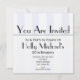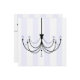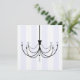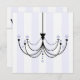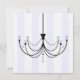 Um convite multifacetado sofisticado que caracteriza uma ilustração de um candelabro de cristal. O fundo é listras verticais azuis e brancas. O lado oposto caracteriza a harmonização do fundo listrado azul e branco. A seção completa caracteriza a guarnição preta. Personalize o texto preto com detalhes de seu evento. Artigos de harmonização Look for tais como o porte postal, os artigos de papelaria, e as etiquetas no Paperie de Jill.