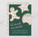 Convide crianças de todas as idades para decorar biscoitos de Natal e celebrar o feriado com este convite de festas decorador de biscoitos festivos. Os cookies em forma de gengibre, estrela e círculo são divertidamente decorados com glacé e uma variedade de borrachas coloridas. A ilustração é colocada sobre um fundo verde com uma textura manchada, e acompanhada de uma inscrição manuscrita com a frase "decoração do vamos e celebração...".