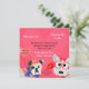 Um convite de festas de Dia de os namorados giro e tão divertido com muitos cachorros bonitos em chapéus, cachecóis e casacos com arcos, balões, corações e flores com áreas que você pode facilmente personalizar com seus detalhes de festa de Dia de os namorados!