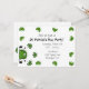 Felpudo irlandês bonito com Convite de festas de Dia de São Patrício de Clovers