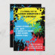 É óbvio antes mesmo de ler o texto sobre este convite que os convidados são convidados para uma festa de pinball selvagem. "splats" coloridos de tinta decoram o fundo preto deste convite com texto sobre ele. Adicione texto extra no reverso ou exclua-o para deixar o vazio de área. Excelente para a festa de aniversário de uma criança, para os adultos se juntarem ou até para um evento de pinball corporativo. Disponível com produtos correspondentes.