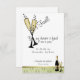 Convite clássico, mas engraçado para uma festa final. Esta é para as mulheres que vieram com a casa e mais. Texto personalizável. Frasco de champanhe e flautas, bem como borda aparada de ouro