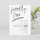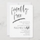 Convite de festas de divórcio moderno. Avise a todos que acabou com este convite de divórcio "finalmente livre" moderno. design na moda a preto e branco com tipografia de script e fundo de textura escrivável.