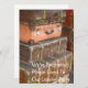 Uma fotografia do convite velho das malas de viagem do couro do vintage connosco estamos emigrando por favor vimos a nosso partido saindo