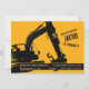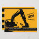 Um convite de aniversário de escavador divertido e brilhante perfeito para qualquer festa do tema da construção.