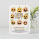 Jack-O'Lanterns grita deste convite de festas divertido. O trabalho de arte com cor d'água enquadra o texto. É ousado e moderno em Cores de outono para a sua grande festa de esculpir abóbora.