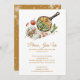 Bonito convite de festas de Natal com um gráfico de aquarela composto por uma recompensa de diferentes guloseimas de Natal. A parte de trás da carta é um ouro profundo e rico, com uma cobertura de floco de neve. Personalize com suas próprias informações.