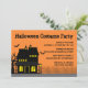 Este convite para festa de fantasia de Halloween, 5 horas por dia, tem um tema de casa assustador. Há uma casa assustadora à esquerda com dois morcegos voando ao redor. O fundo é uma cor laranja clara. Você pode personalizar facilmente as informações da sua parte à direita.