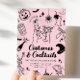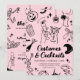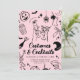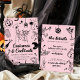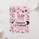 Ponha o tom para uma festa de na moda e adulto assustador do Dia das Bruxas, com este convite de festas preto de fantasia e cocktails cor-de-rosa. Apresentando óculos martini, esqueletos dançarinos, fantasmas e ilustrações ao estilo vintage, este elegante modelo é perfeito para encontros de Halloween com um toque de classe.