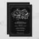Uma carta intransigente proclama, "Algo ruim assim vem" nesta design original de Kat Parrella. A tipografia branca e preta no estilo preto é acentuada por um plano de fundo sutil diagonal de banda de smoking. Elegante, assustador e divertido - um convite que certamente amam.