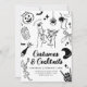 Defina o tom para uma na moda e assustadora festa de Dia das Bruxas adulta com este convite de festas preto-e-branco de fantasia e cocktails. Apresentando óculos martini, esqueletos dançarinos, fantasmas e ilustrações ao estilo vintage, este elegante modelo é perfeito para encontros de Halloween com um toque de classe.
