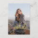 Adicione a sua foto favorita, o anúncio de graduação e o convite de festas no verso clicando no botão "Personalizar". Apresentando uma foto vertical do quadro de cheio com a palavra "formando" em script em negrito.