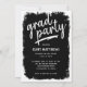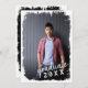 Barato de convites e anúncios de festa de formatura impressos personalizados com um modelo simples para personalização. Este design a preto e branco em negrito apresenta um quadro aflitivo rústico que se aproxima da sua foto de mais velho com fontes de script escovadas. Adicione uma foto e personalize-a com os detalhes da festa de formatura no verso. Use as ferramentas de design para escolher qualquer cor de fundo, adicionar mais fotos e alterar as fontes de texto e as cores para criar um convite exclusivo de um tipo de formando.