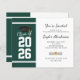 Adicione seu ano de graduação, nome e detalhes do local com data para este moderno fundo vermelho e branco negrito com convite de festa de formatura de tipografia negra usando nosso botão "Personalizar".
