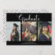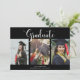 Comemore o formando com este moderno anúncio de graduação e convite de festas de três fotos modernas. Personalize o lado frontal com três fotos de mais velho, ano de graduação, nome e nome da escola. A parte traseira da placa apresenta um convite de festa de formatura com borda padrão de diamante preto e branco e detalhes de sua parte.