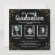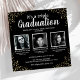 Saia em estilo com nossos elegantes convites de graduação em conjunto, com um na moda preto personalizável. Cada convite é enfeitado com uma espiral de brilho dourado confetti, mostrando fotos de todos os três formandos, e está tudo amarrado com nossa modelo de celebração tripla moderna. A personalização nunca foi tão fácil ou tão chique.