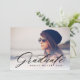 Comemore e honre seu formando de estilo com este na moda e elegante convite para fotos de formatura. Apresentando uma camada elegante de script de caligrafia moderna que diz "Formando" com um gradiente branco transparente logo acima de sua foto. Personalize com sua própria foto, nome do formando e ano de aula na frente. Adicione os detalhes da sua festa ao fundo.