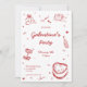 Convite de festas de Galentine para a Festa de Namorados Noturnos Red Whimsical Girls Convidam | Coleção ADELPHA, querida! Reúna seus melhores amigos com um convite de festas personalizável do "faça você mesmo". Edite facilmente seu convite de Dia de os namorados desenhado à mão vermelha com todos os detalhes. Esta mão vermelha editável desenhada enquanto o convite noturno das garotas Galentinas toca o tom para sua celebração de namoradas. A Coleção ADELPHA apresenta um fundo branco com rabiscos desenhados à mão em vermelho de arcos, corações, champanhe, um cherub, fitas, um bolo de cereja, vidro de papa de cristal e estrelas para sua divertida noite de bebês e bebida. Perfeito para uma moda que Galentines convida para uma noite com seus amigos!