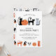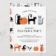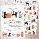 Gatos bonitos e assustadores, lanternas de abóbora e fantasmas. Um Halloween divertido ou convite de aniversário de outono, com um padrão correspondente no verso. Personalize com seus próprios detalhes de celebração. Arte original de Nic Squirrell.