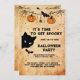 Estou entusiasmado em compartilhar um convite de festas de gato preto de halloween. A tipografia aparece em preto com diferentes tamanhos e opções. você pode mudar o fundo para suas preferências na ferramenta design. Tem uma aranha típica, a abóbora e a terra dos morcegos em preto e laranja. Ao redor da esquina está um gato preto sorrateiro procurando por um morcego. Você pode personalizá-lo com uma Festa de Introdução, Hhalloween, data, endereço e RSVP. A parte de trás do convite tem a mesma terra e um fantasma preto e bonito e um gato com espaço no meio para seus monogramas. Esta design vem com papel antigo de carvão retrorreflector bege que atinge o perfeito design. Torna-o mais assustador e velho - Hobinishop