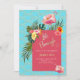Ponha o tom para o seu partido com este vibrante convite tropical. Com azur azul adorável e cor-de-rosa com pistas de ouro você pode personalizá-lo com seus detalhes. Também disponível como download.