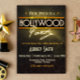 O rolo de cinema é um símbolo muito icônico de Hollywood, que é o design de sotaque do convite. A textura Dourada é usada na bobina para corresponder ao fundo preto do mármore do convite.
